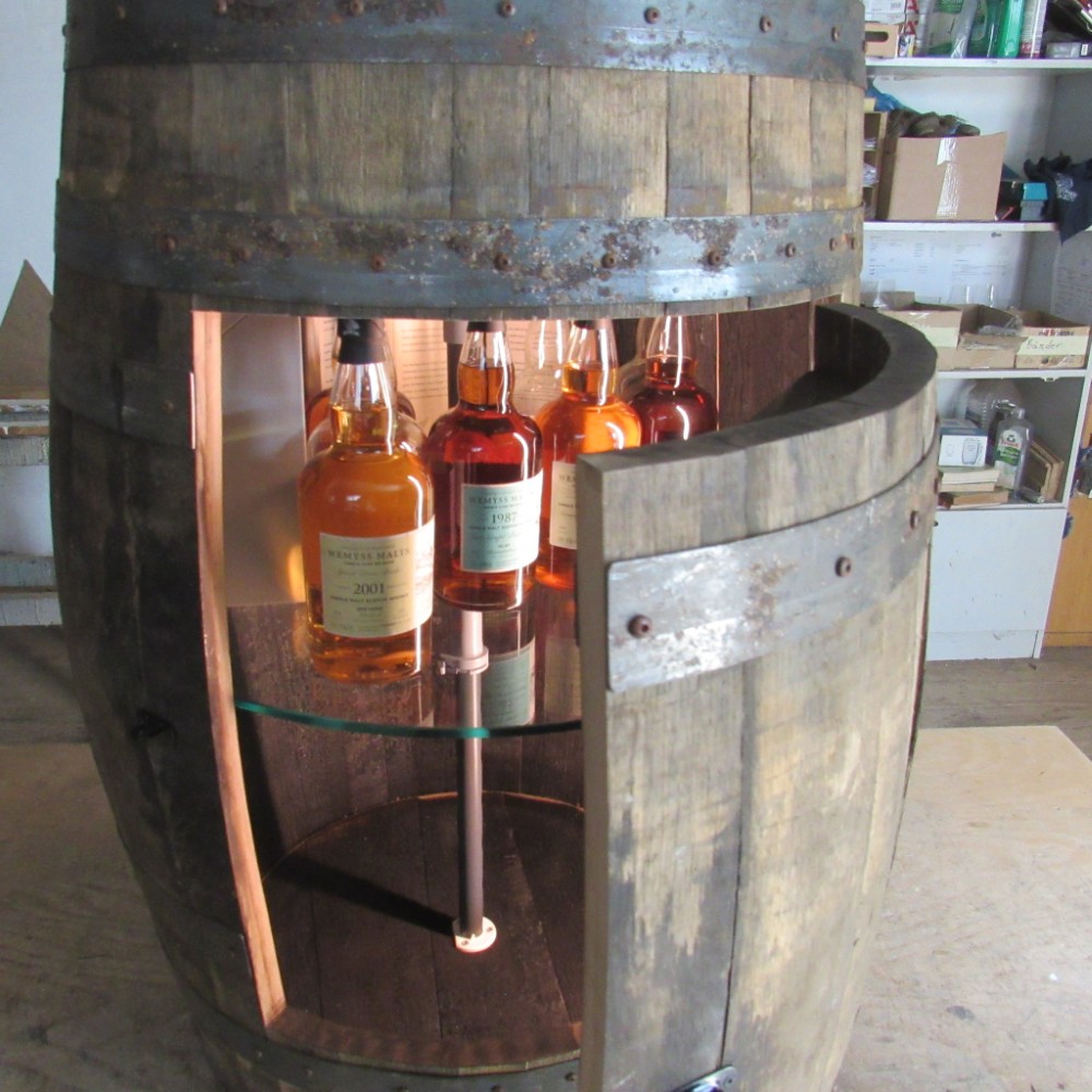Wir sind ja relativ viel auf Whiskymessen als Aussteller unterwegs, um unsere Unikate den Whiskyliebhabern zu offerieren. Von München bis Bremen, von den beiden Hamburger Messen bis zur Interwhisky in Wiesbaden, über Mülheim, Düsseldorf, Bremen und den Whiskyherbst in Berlin. Dort hatten wir neben unseren zahlreichen Fassdeckeln auch immer einige Whiskyfässer dabei, die wir zu Barschränken umgebaut haben. Und genau diese stießen bei unseren Kunden immer wieder auf großes Interesse. Jedes Mal, wenn wir auf einer der Messen waren, ging es in den zahlreichen Gesprächen um die Menge der Whiskyflaschen, die in einen Barschrank passen. Dabei lagen die Schätzungen meistens zwischen 20 und 50 Flaschen. Es gab aber auch Kunden, die schätzen die Menge der zu platzierenden Flaschen auf 80 Stück. Nach unserer Meinung passen aber „nur“ locker 40 Flaschen in ein Barrel. Es kommt dabei natürlich auch auf die Flaschengröße an.